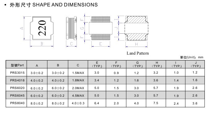 超薄PRS功率電感,頻閉式結構,適合表面安裝