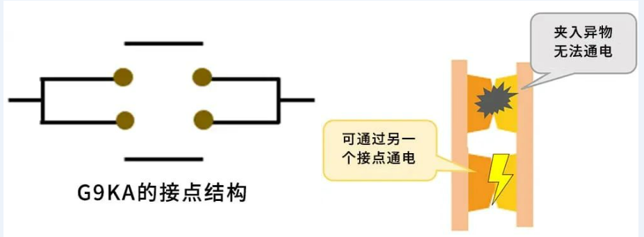 歐姆龍G9KA繼電器低接觸電阻0.2mΩ實現(xiàn)這個目標(biāo)所面臨的重大課題之一便是接點上的異物,接點上一旦存在異物則會妨礙電流的通道,從而導(dǎo)致低電阻升高。