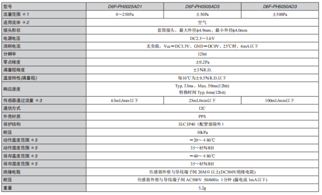 歐姆龍壓差傳感器D6F系列技術參數