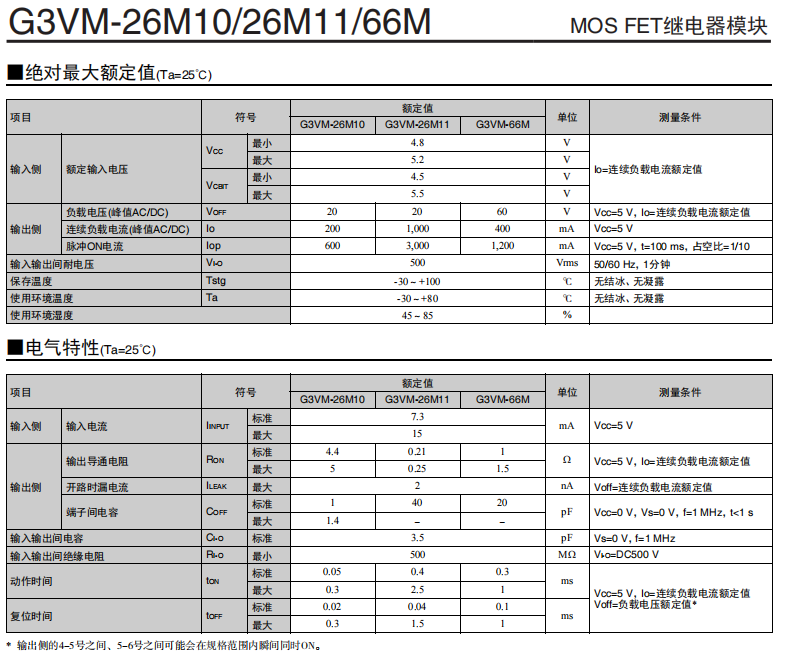G3VM-26M10/M11 MOSFET歐姆龍繼電器模塊