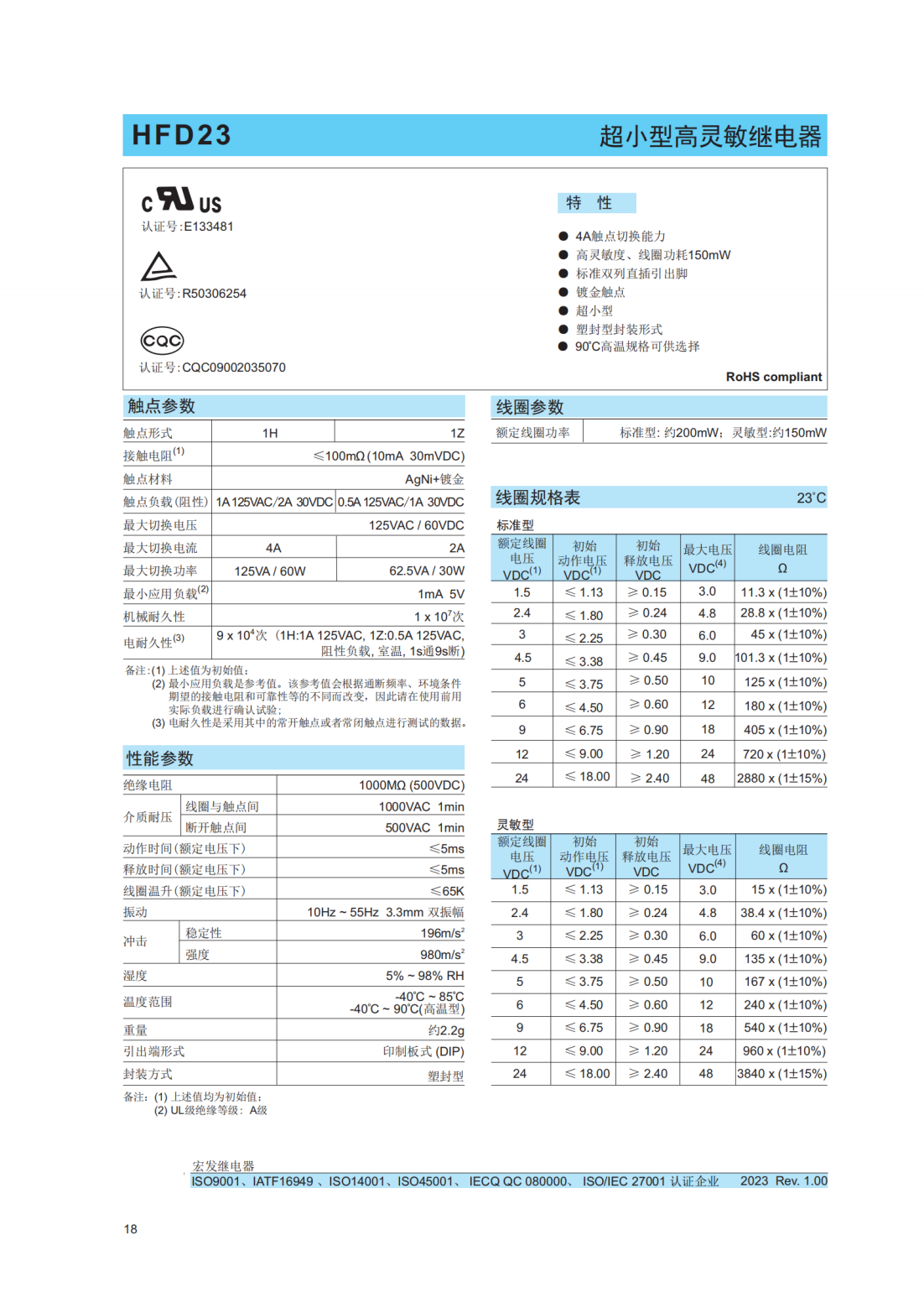 HFD23-005-1ZS宏發繼電器