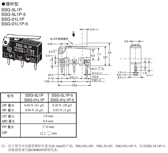 | 注:SPST-NO和SPES-NC型號的詳細情況,請咨詢當?shù)豋MRON銷售代表 |