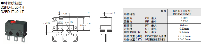 D2FD-2歐姆龍微動開關