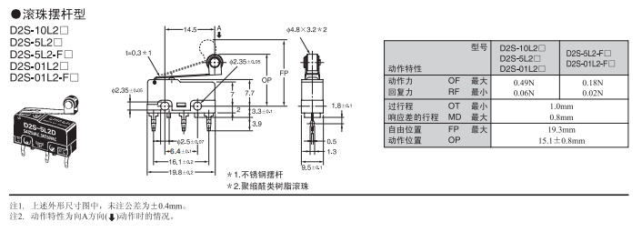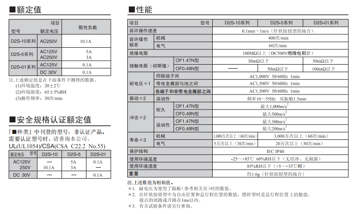 歐姆龍微動開關D2S-10