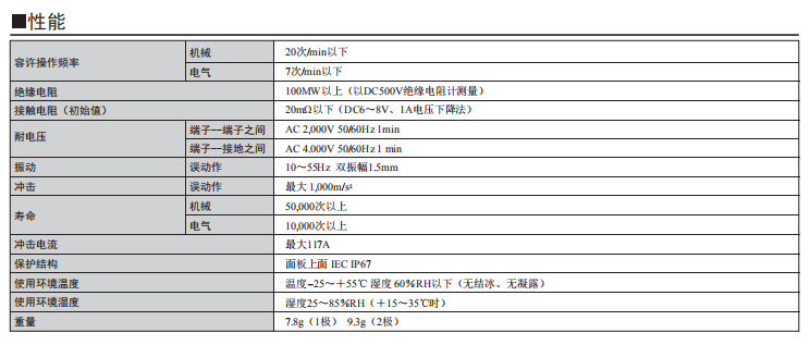 額定/性能