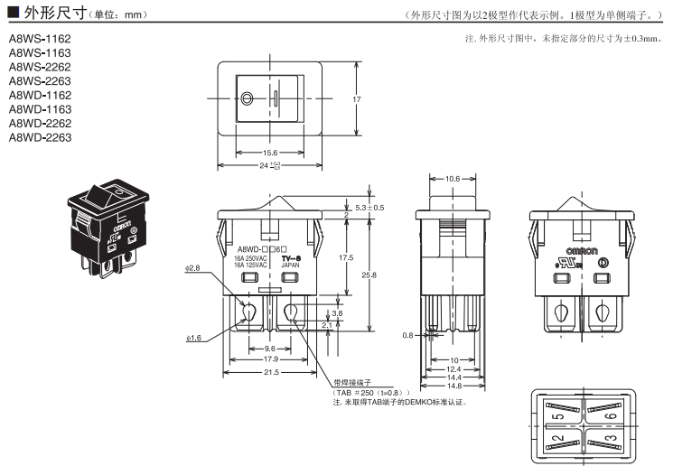 A8WD-1163船形歐姆龍開關(guān)