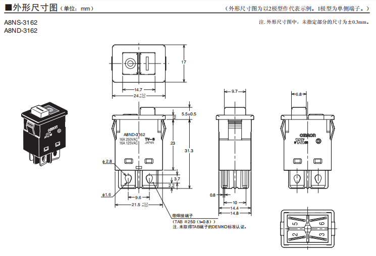 A8ND-3162船形歐姆龍開(kāi)關(guān)