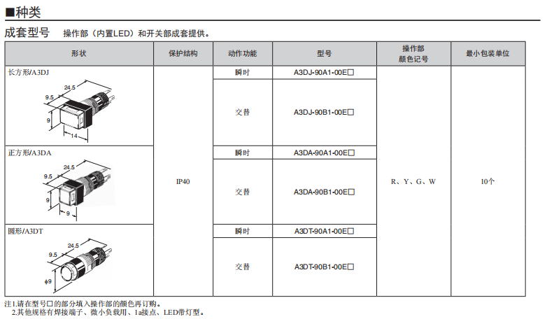 A3D 帶燈按鈕歐姆龍開關(圓型φ8)
