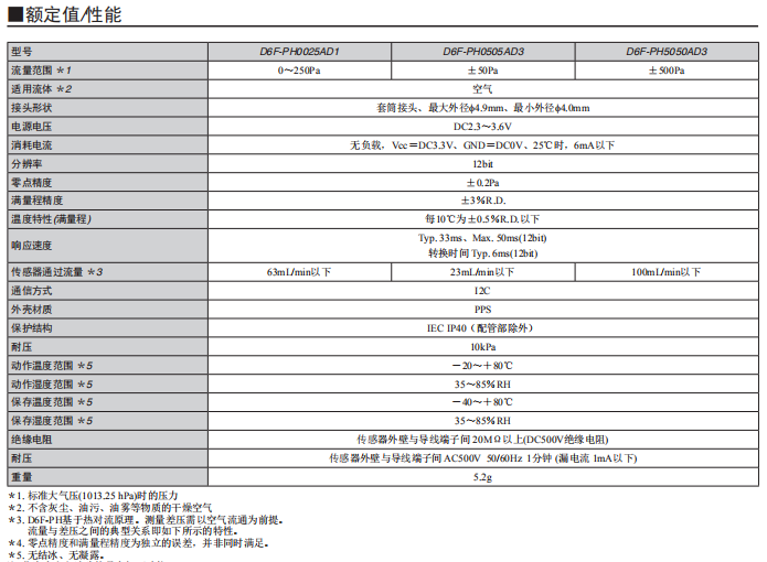 D6F-PH0505AD3 -50~+50Pa(±0.2in. H2O)