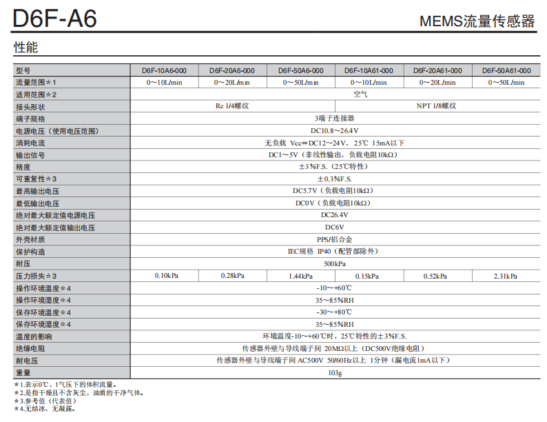 D6F-A6 小型流量歐姆龍傳感器